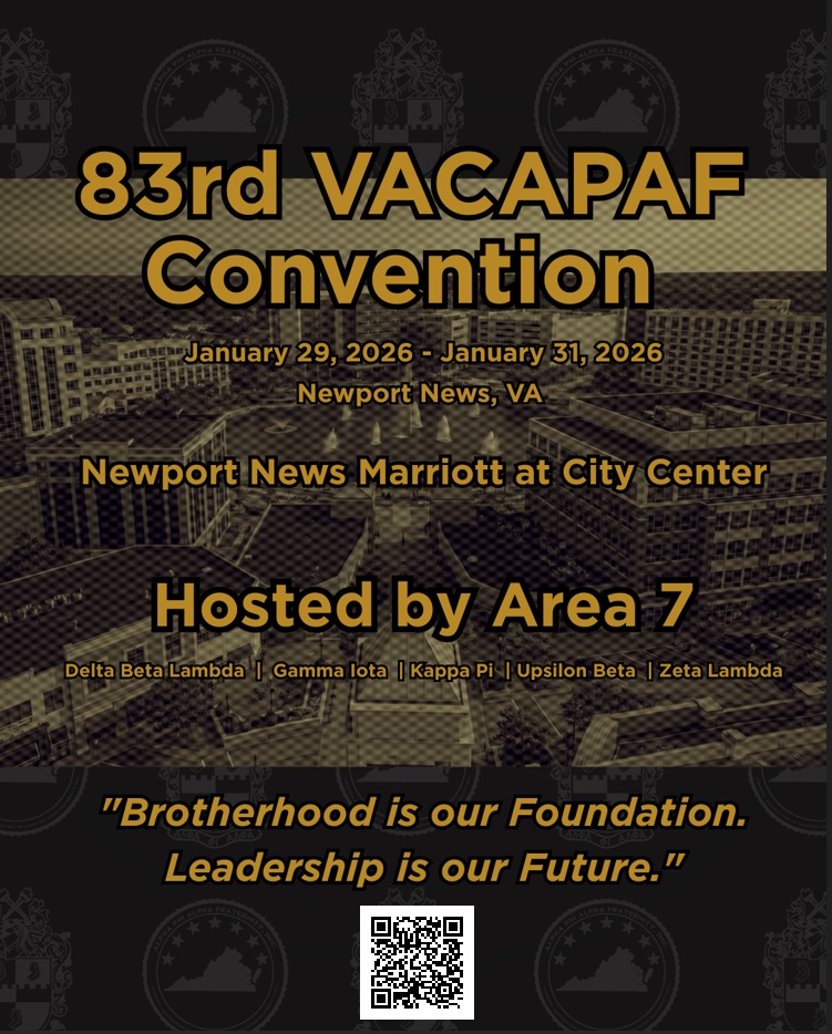 The host Chapters are Delta Beta Lambda, Gamma Iota, Kappa Pi, Upsilon Beta, and Zeta Lambda. Check back soon for additional details for the 83rd VACAPAF Convention.